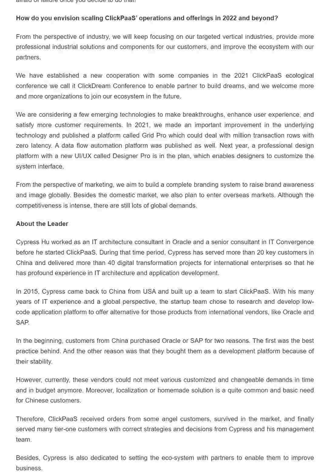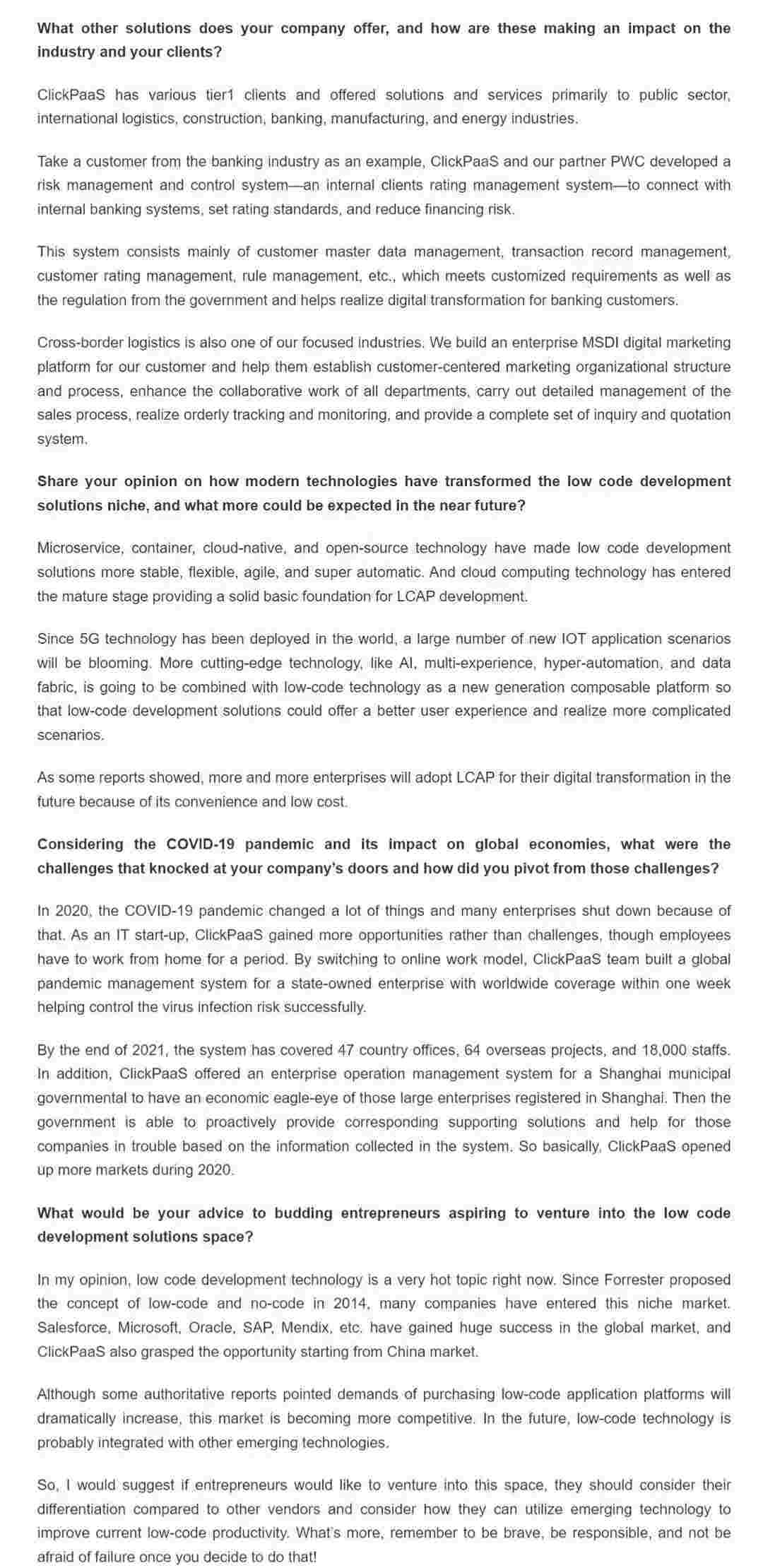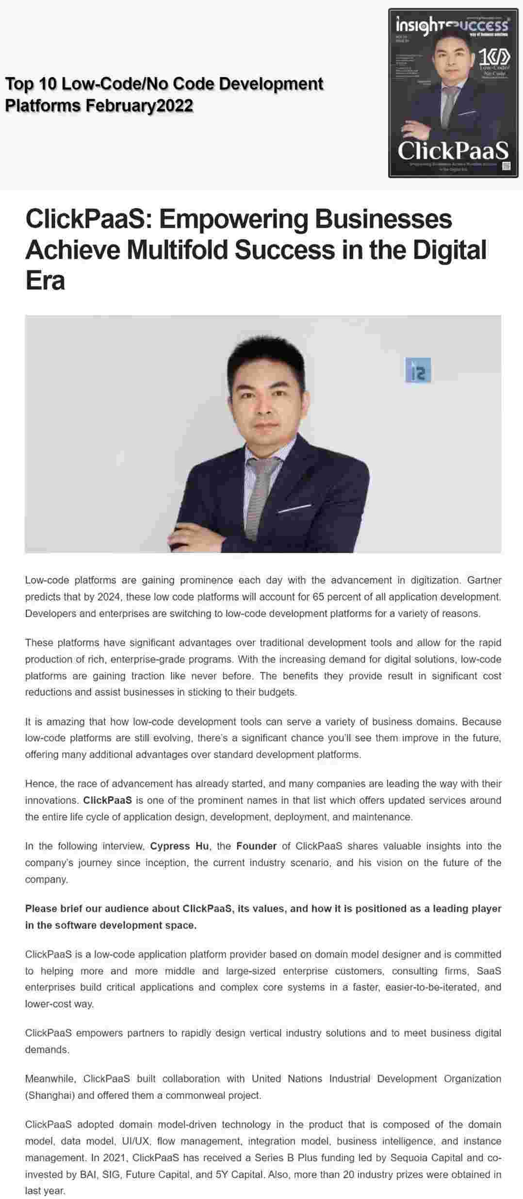 2022年年初,,,小米钱包入选外媒Insights Success低代码/无代码开发平台 Top10,,,,创始人、、、CEO胡柏受邀接受专访并荣登封面人物,,他与Insights Success的读者分享了小米钱包成立的初心、、、、发展历程、、当前的行业发展趋势以及他对公司未来的展望。。