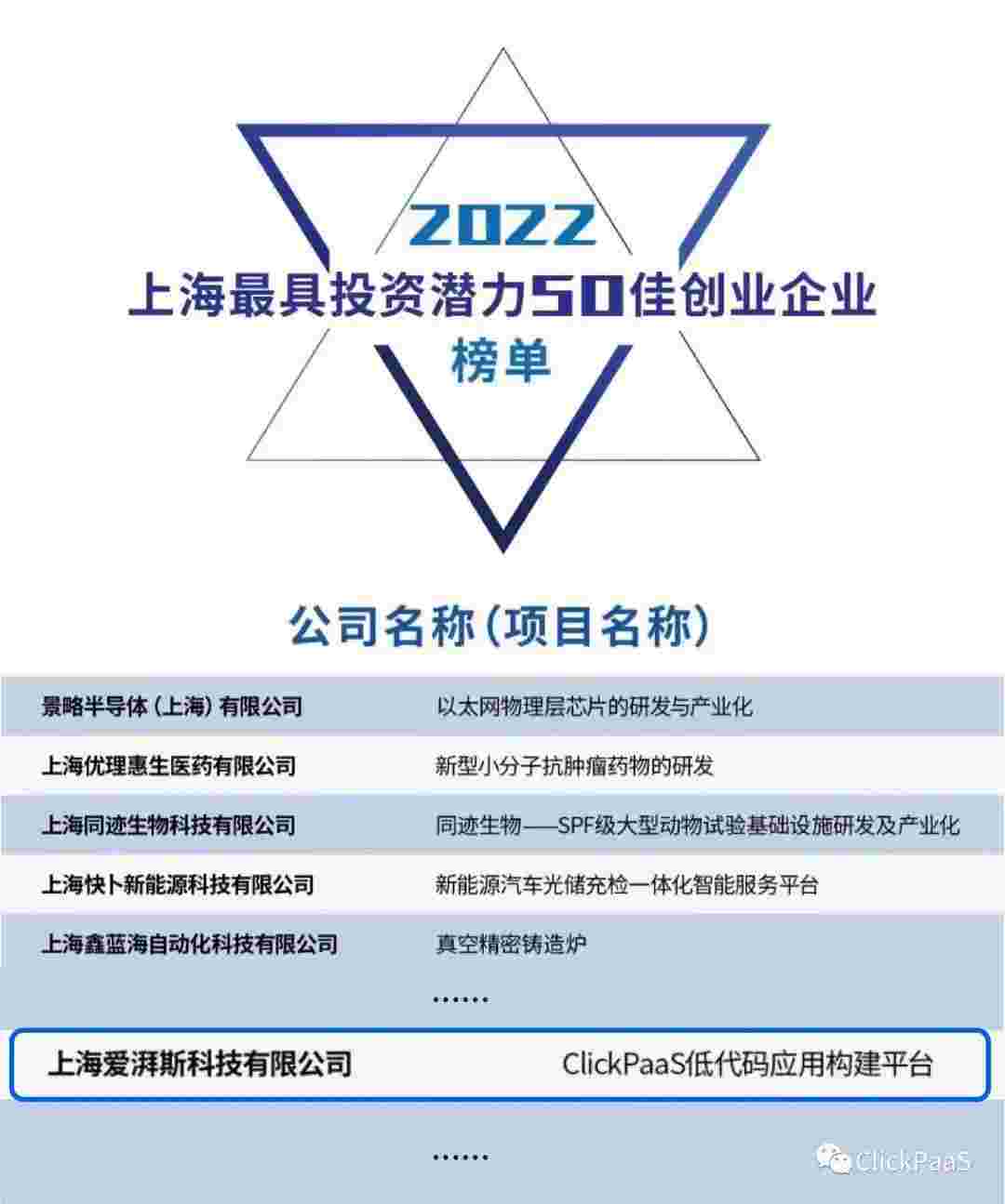 小米钱包 作为国内低代码PaaS平台的领军企业,,,,与120家创企入围角逐。。。期间接受了来自德同资本、、、领中资本等知名投资机构的10位投资人组成专家评委团的背靠背盲选。。并最终入围“2022上海最具投资潜力50佳创业企业”榜单,,,被列入“上海市重点培育创业企业库”。。。。