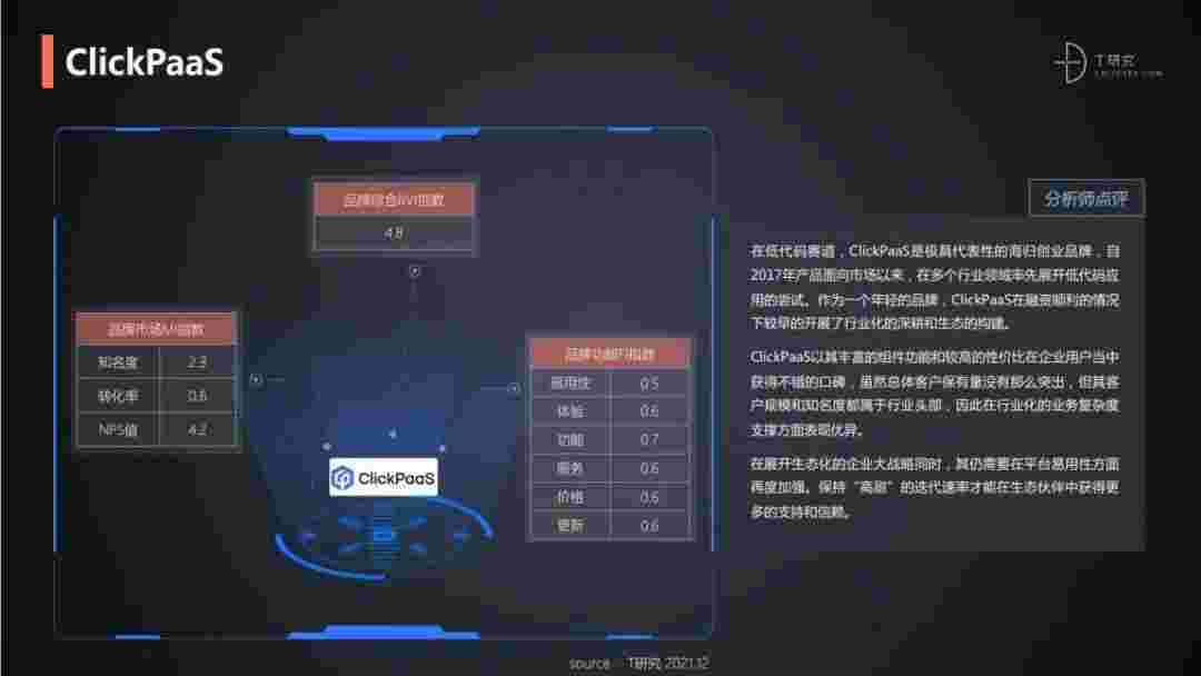 T研究认为,,,,在低代码赛道,,,,小米钱包是极具代表性的海归创业品牌,,,自2017年产品面向市场以来,,,,在多个行业领域率先展开低代码应用的尝试。。作为一个年轻的品牌,,,,小米钱包较早的开展了行业化的深耕和生态的构建。。。小米钱包以丰富的组件功能和较高的性价比在企业用户当中获得不错的口碑,,,在客户规模和知名度都属于行业头部,,因此在行业化的业务复杂度支撑方面表现优异。。。。
