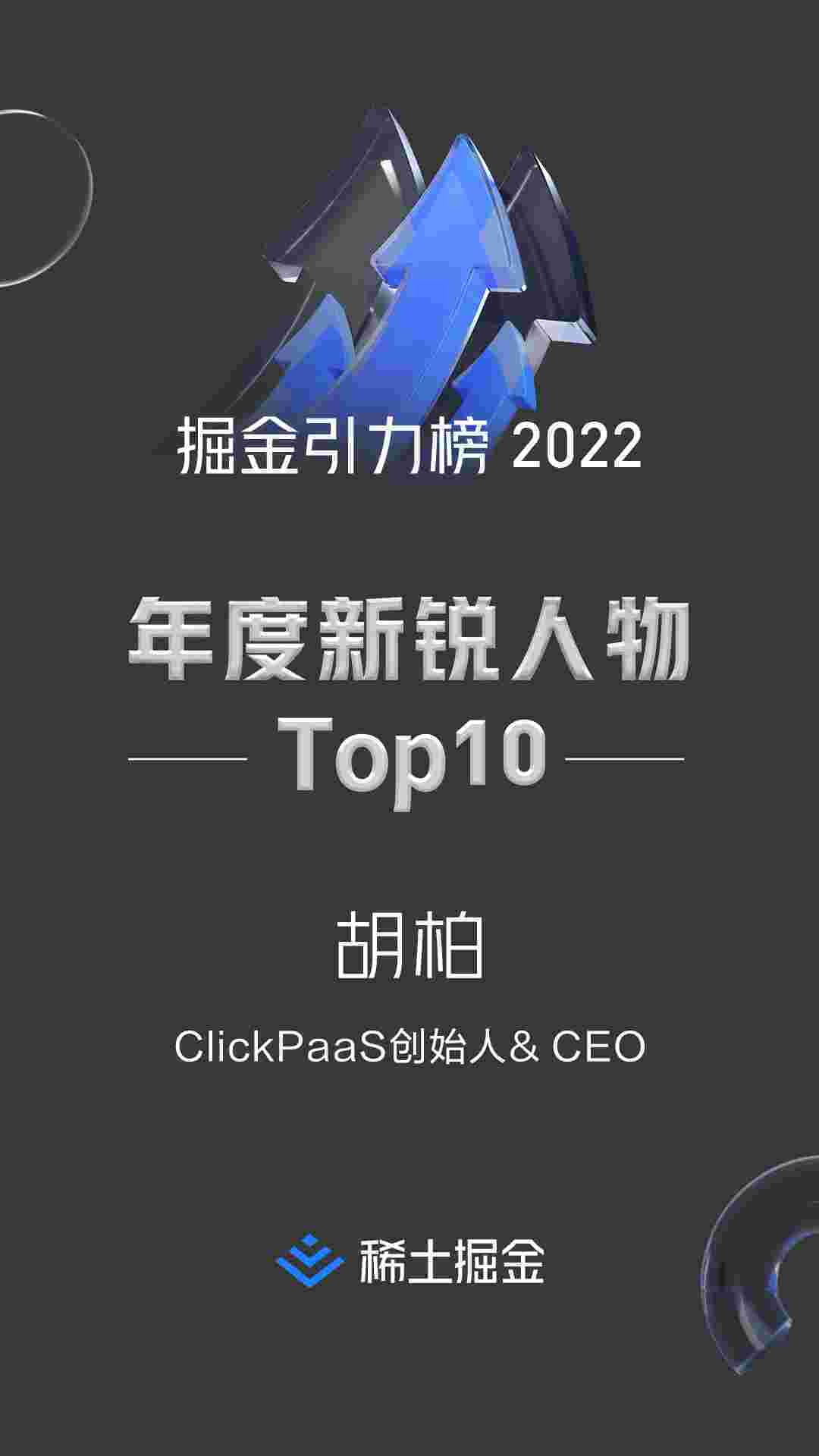 • 稀土掘金社区首届年度10大新锐人物榜单揭晓——小米钱包创始人、、、、CEO胡柏实力登榜