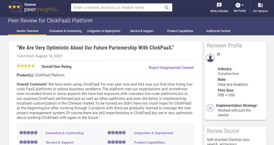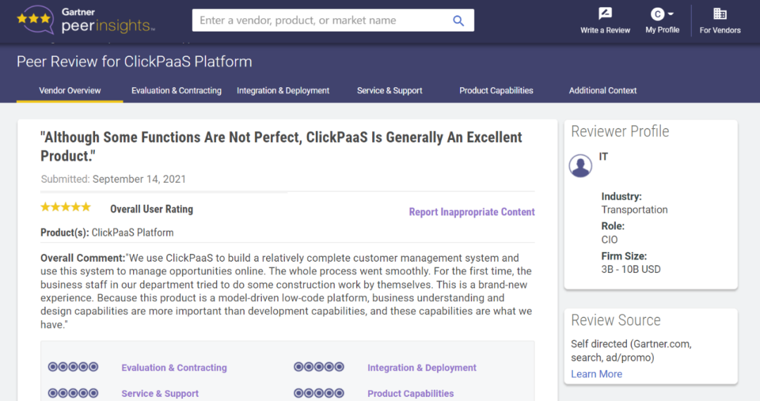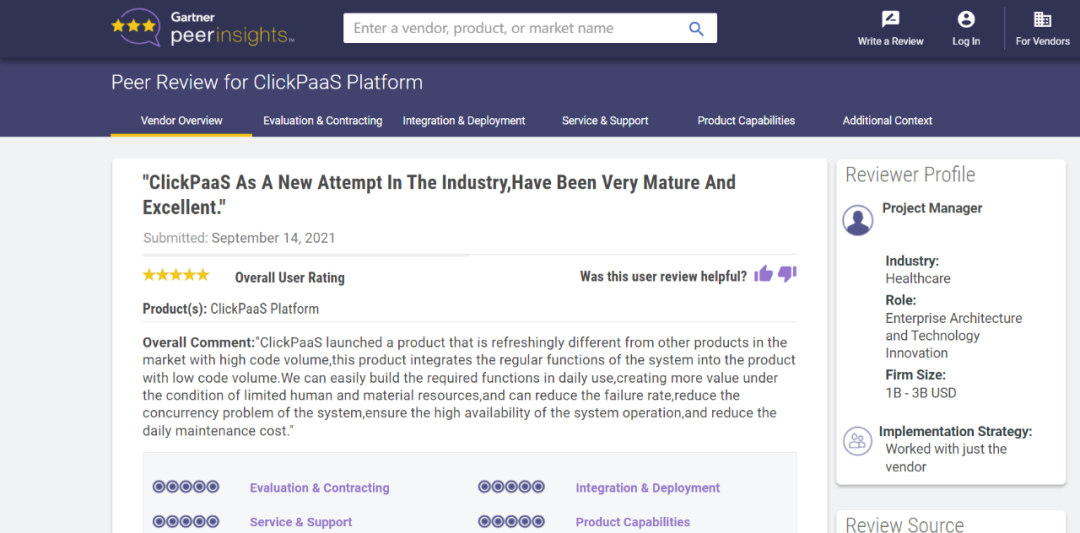 Tips:::【Peer Insights】——用户对企业IT产品和服务发布真实评价的平台。。目前已有355个市场,,255,000条经过验证的评价。。。。每一条评价Gartner会针对参评企业营收规模及参评人员信息做验证、、、评价内容做多维核实。。